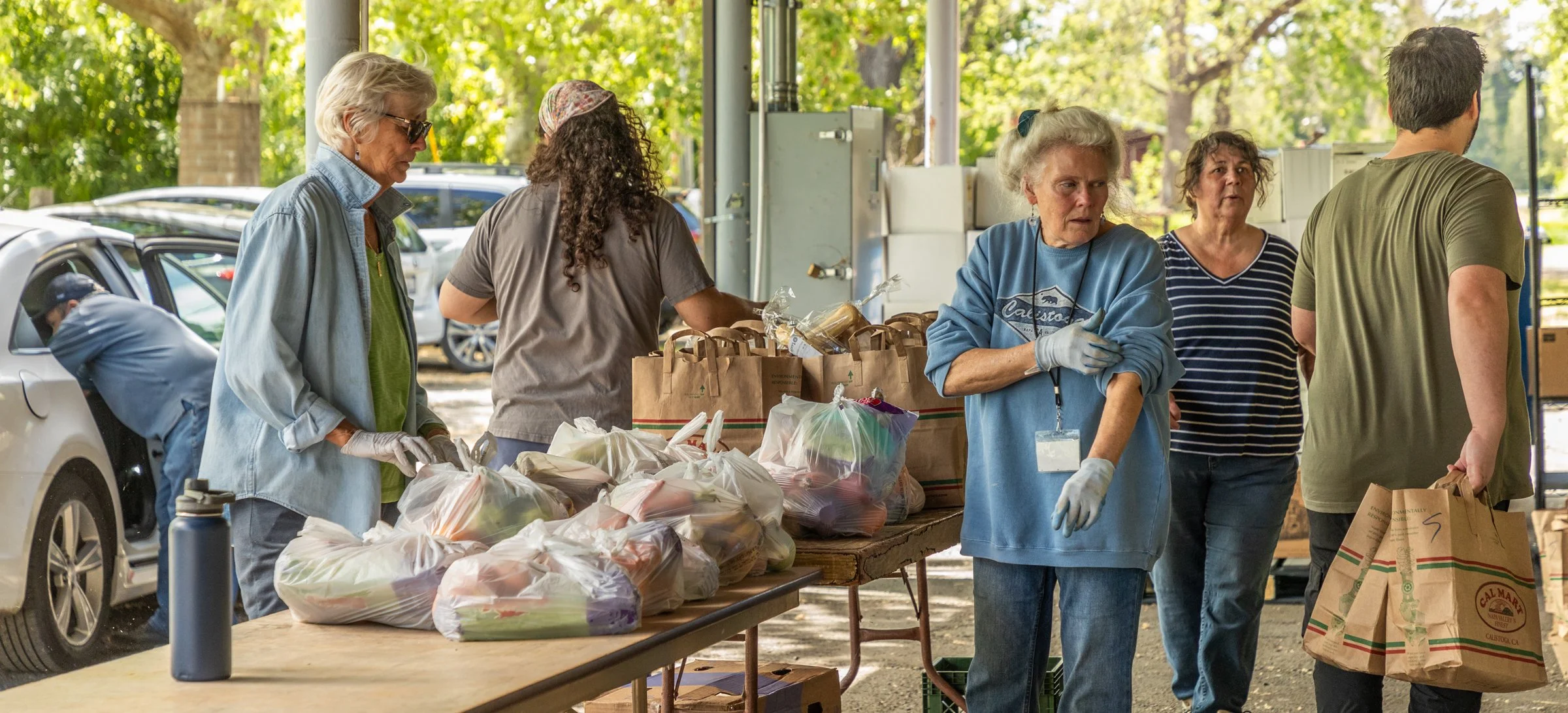 On the second and fourth Thursday of each month between 2pm - 5pm, Calistoga Cares holds food distribution pickups for qualified families. Distributions include three boxes of food per family: one box of dry goods, one bag of proteins & perishables, and one bag of fresh vegetables. Families are required to enroll in the program, but no one is turned away.